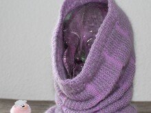 Web handgestrickte Sparstrümpfe mit gedrechselter Buchenholzscheibe als Einwurf. Web Mein Sparstrumpf ist fertig.