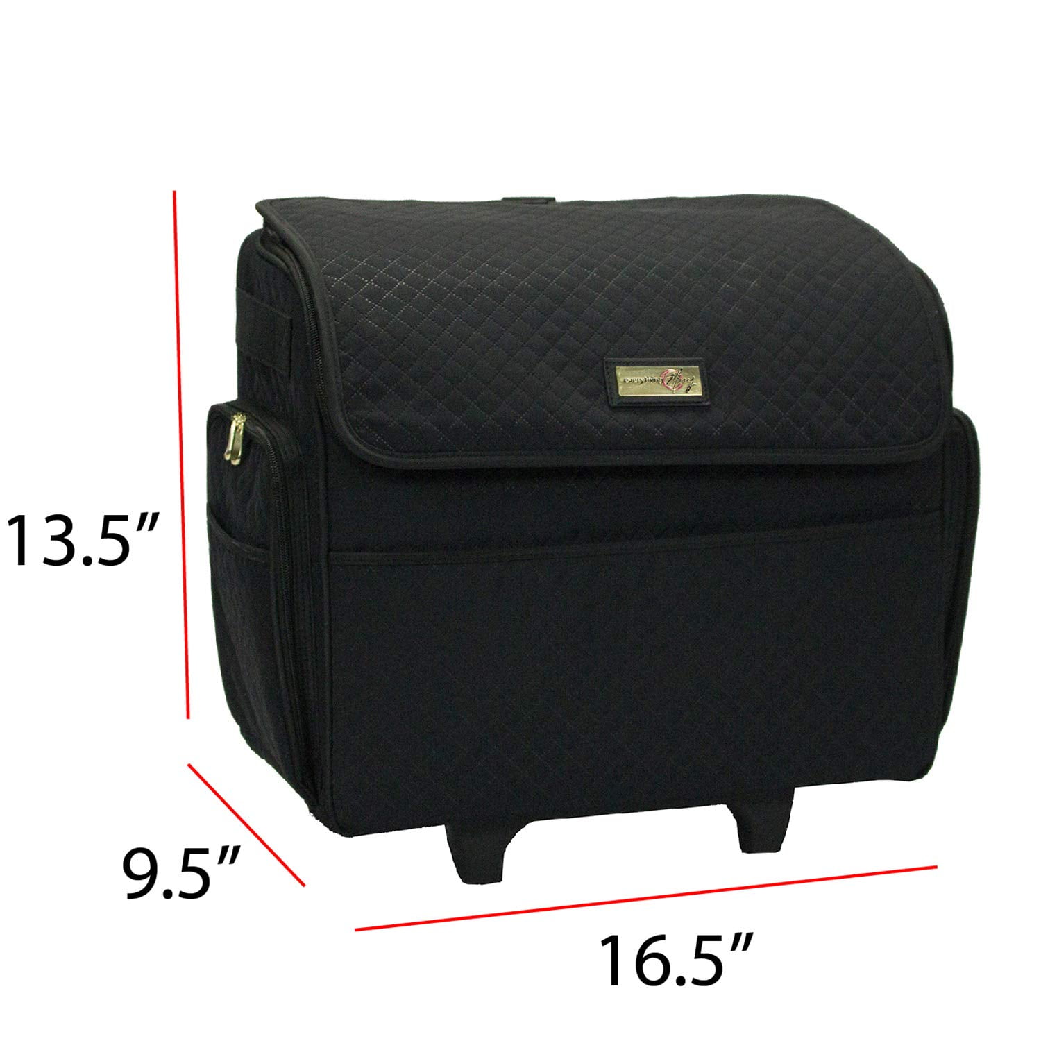 Amazon Com Everything Mary Sewing Machine Rolling Carrying Case Black Quilted Trolley Bag With Wheels For Brother Bernina Singer Most Machines Wheeled Tote Carrier For Notions Crafts Arts